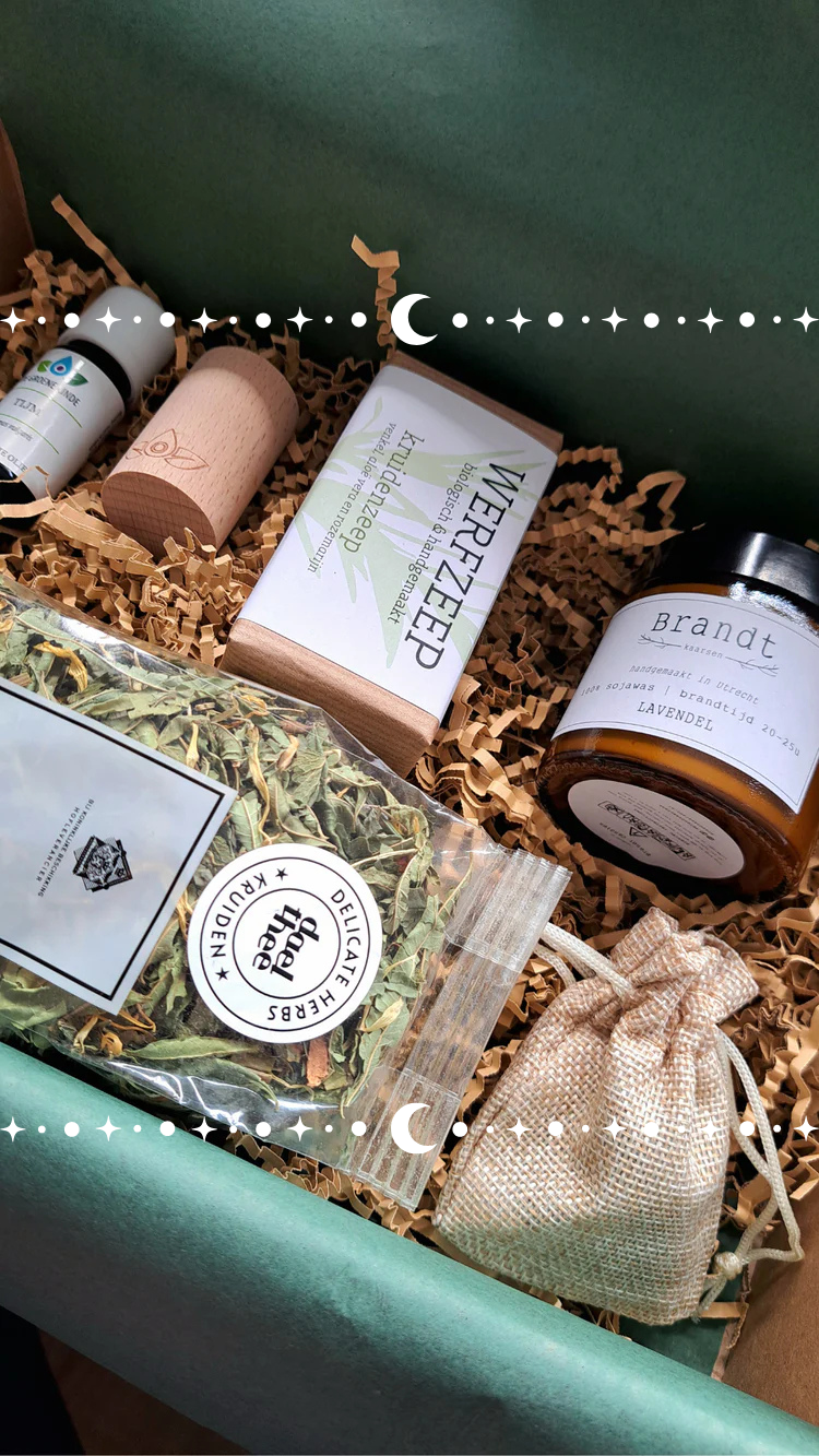 - Mindfulness producten – losse items zoals edelstenen, essentiële oliën, thee en ademhalingskaarten om je eigen ritueel samen te stellen.